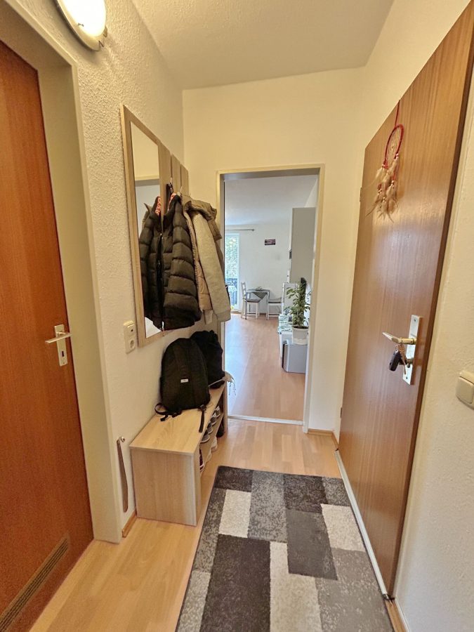 Ein kompakter Wohnungsflur empfängt Sie und hält noch genügend Platz für eine Garderobe bereit.