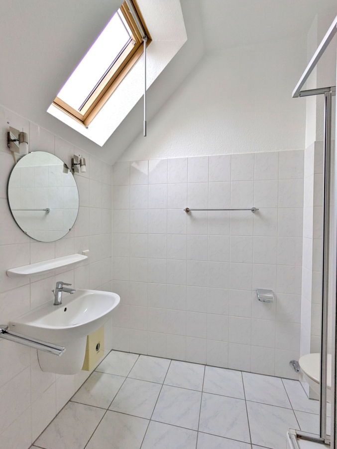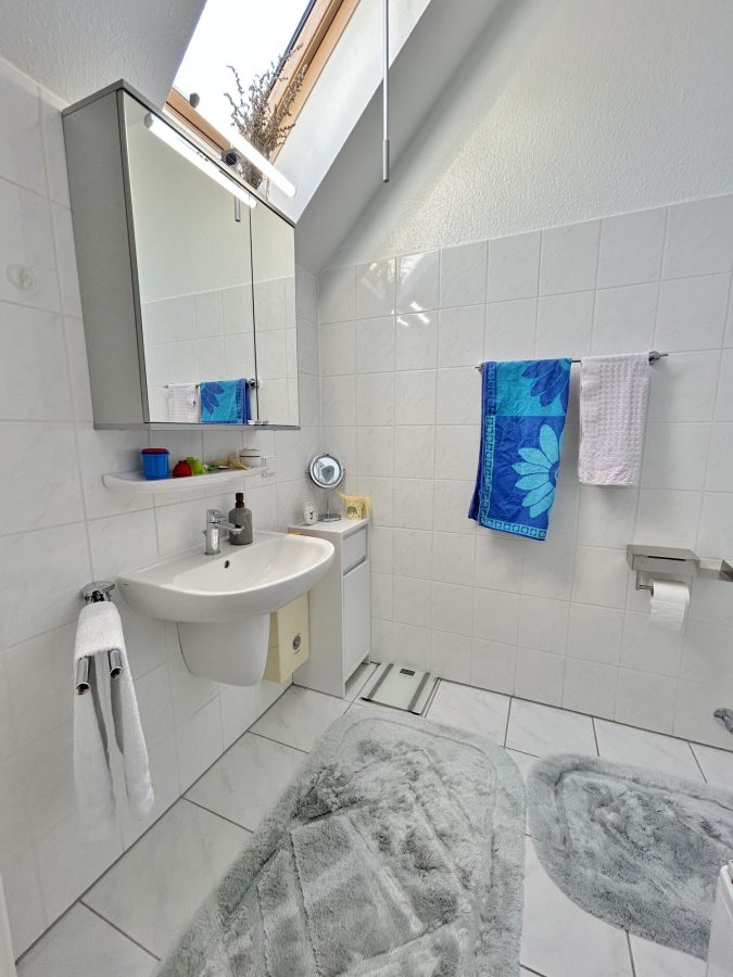 - hell gefliestes Duschbad mit Velux-Fenster im 2. OG