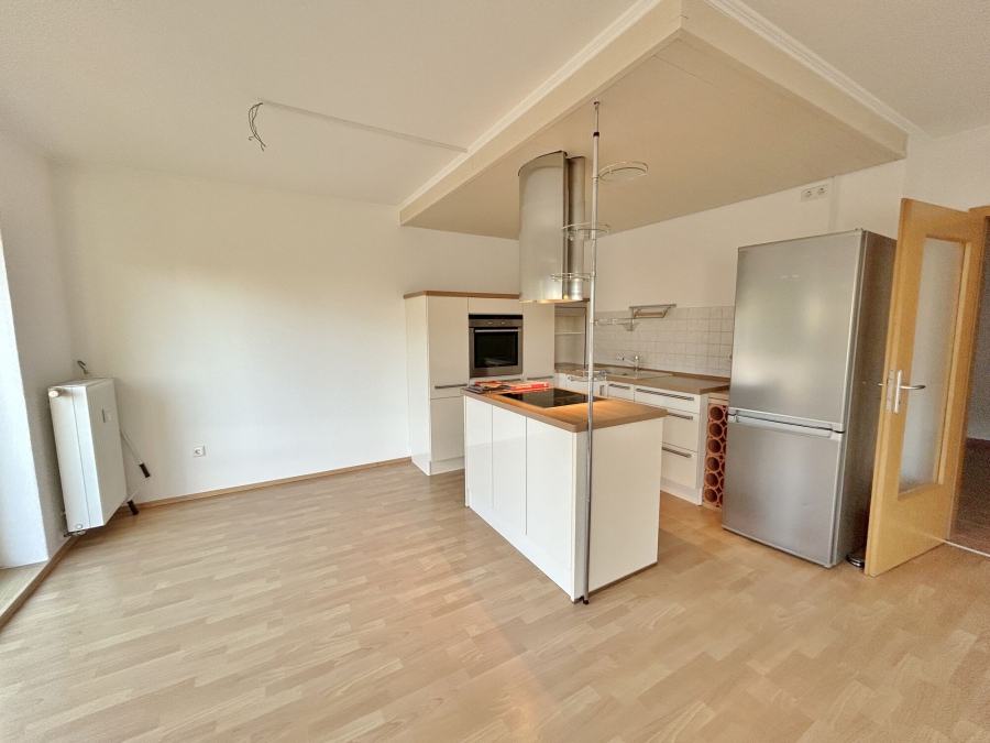 - offener Wohn-, Ess- und Kochbereich mit Laminat