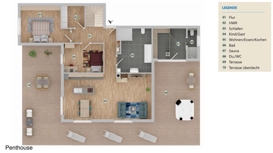 Dieses Penthouse ist weit mehr als eine Wohnung. Es ist ein architektonisches Statement. Ein Rückzugsort, an dem Stilbewusstsein, hochwertige Materialien, klare Linien und ein durchdachtes Wohnkonzept zusammenfinden. Für Menschen, die mehr erwarten als Wohnraum – die einen besonderen Platz suchen, an dem Luxus, Ruhe, Naturnähe und modernes Design zu einem einzigartigen Lebensgefühl verschmelzen.