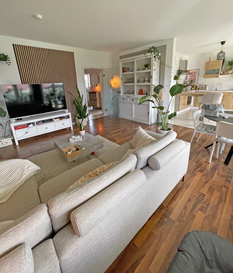 - Wohnzimmer und Küche mit Zugang Terrasse
