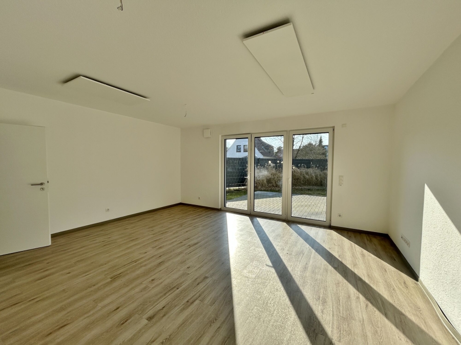 Die barrierefreie Gestaltung der Wohnung bietet Ihnen eine flexible Raumaufteilung. Drei Schlafzimmer warten darauf, nach Ihren Vorstellungen eingerichtet zu werden. Das großzügige Duschbad mit ebenerdiger Dusche lädt zum Entspannen ein. Ein praktischer Abstellraum mit Anschlüssen für Waschmaschine und Trockner ergänzt das Angebot. Die Küchenanschlüsse sind im offenen Wohnbereich integriert, wo Sie Ihre Traumküche verwirklichen können. Vom lichtdurchfluteten Wohnraum aus gelangen Sie direkt auf die Terrasse, die mit einem angrenzenden Gartenbereich viel Platz für Ihre kreativen Ideen bietet.