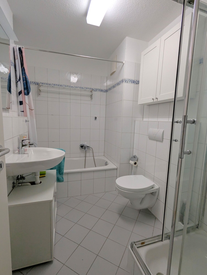 - neutral gefliestes Vollbad mit Dusche und Badewanne