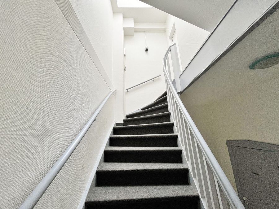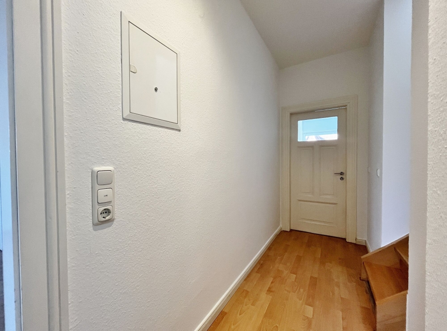Bereits beim Betreten des Hauses empfängt Sie ein einladender Eingangsbereich, den Sie über wenige Außenstufen erreichen. Die liebevoll aufgearbeitete, mit Vlies ausgelegte Treppe führt Sie hinauf in das zweite Obergeschoss, wo Sie eine frisch gestrichene und äußerst gepflegte Drei-Zimmer-Wohnung mit ca. 94 m² Wohnfläche erwartet.