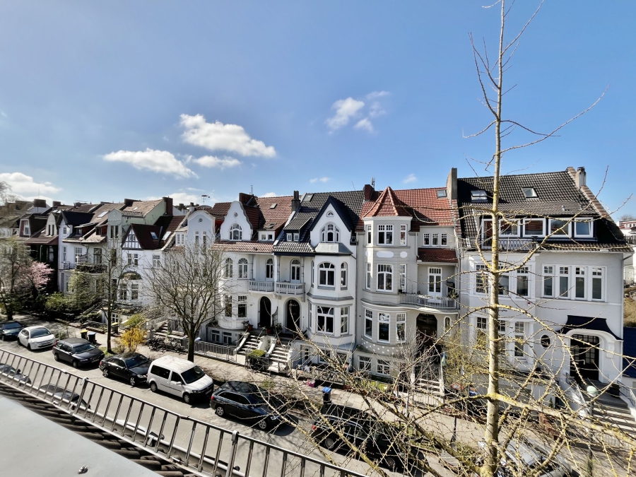 Die Wohnung liegt in einer Wohnstraße mit wunderschönen Altbaufassaden.