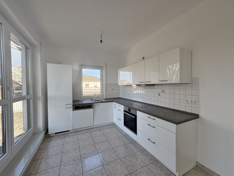 Die bereits vorhandene L-förmige Einbauküche inklusive Geschirrspülmaschine lässt keine Wünsche offen und fügt sich harmonisch in den Raum ein.