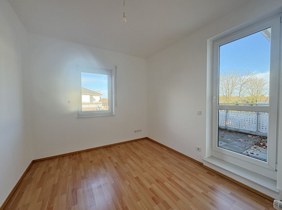 Die beiden gut geschnittenen Schlafzimmer – ideal auch als Arbeits- oder Gästezimmer – lassen sich vielseitig möblieren. Eines der Zimmer bietet zudem direkten Zugang zur Dachterrasse.